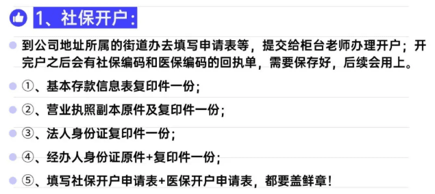 5、社保開(kāi)戶應(yīng)當(dāng)在新公司成立的三十日內(nèi)完成開(kāi)戶,需要注意的是社保和醫(yī)保是兩個(gè)獨(dú)立系統(tǒng),需要分別辦理;