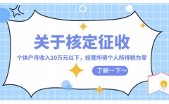 以河北核定征收個(gè)體戶政策為例:因?yàn)閭€(gè)體戶流程簡單,不需要繳納25%的企業(yè)所得稅及20%的分紅稅,最主要是因?yàn)閭€(gè)體戶可以享受核定征收。增值稅1%,附加稅0.06%,個(gè)稅可以享受核定...