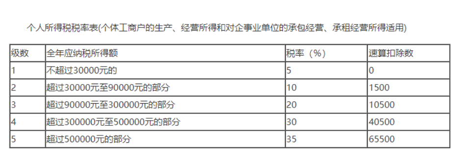 為了看起來(lái)直觀,我將經(jīng)營(yíng)所得個(gè)稅稅率表放在下面,如圖: